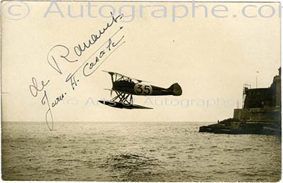 Photographie dédicacéePhotographie dédicacée. Sans date ; 140 x 90 mm. Photographie le représentant en vol. Rare.