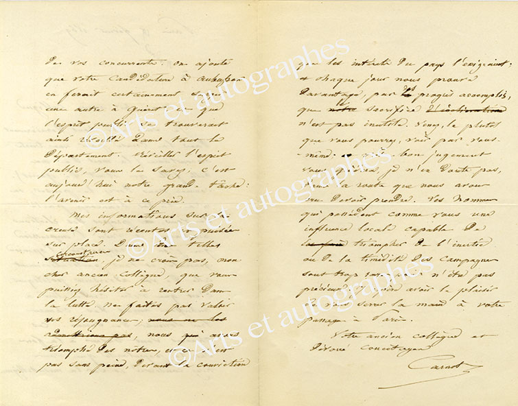 Lettre autographe signéeLettre autographe signée, adressée à Martin Nadaud. Paris, 19 février 1869 ; 3 pages in-8°. « Je suis allé tout dernièrement dans la Creuse pour une triste circonstance (la mort de ma belle-fille, qui était de Guéret […]). On...
