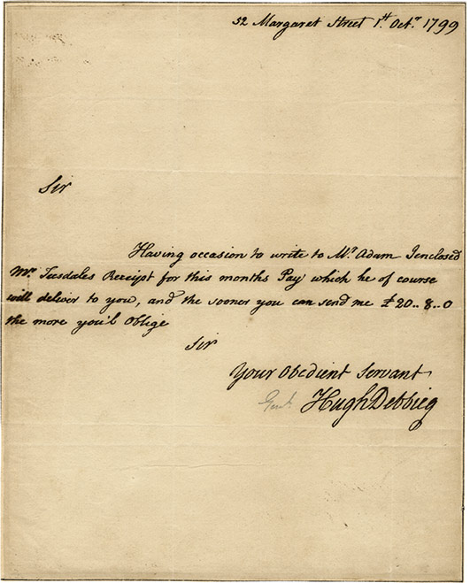 Lettre autographe signéeLettre autographe signée. 1er octobre 1799 ; 1 page in-4°, en anglais. ...