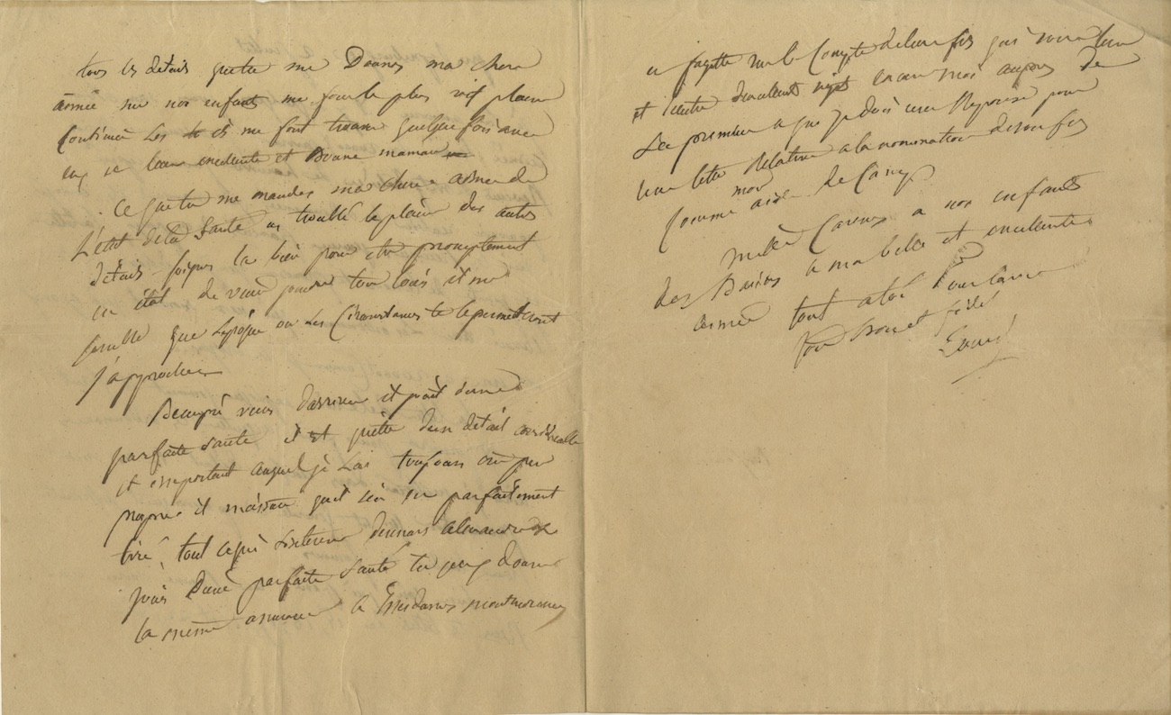 Lettre autographe signéeLettre autographe signée « Louis » adressée à sa femme. « Près de Presbourg», 2 juillet [1809] ; 2 pages 1/2 in-4°. ...