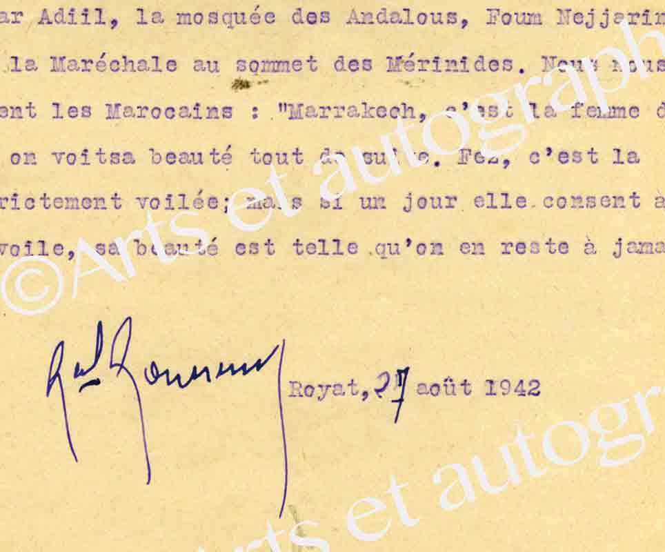 Lettre autographe signéeLettre autographe signée, adressée à M. Rebstock. Neuilly, le 23 juin 1933 ; 1 page in-4°. « Réaliserons nous enfin, cette année un vieux projet d’une conférence à Strasbourg, la seule ville de France où je n’ai pas pris la...