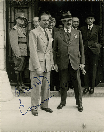 Photographie signéePhotographie signée. [1932] ; 16,3 x 11 cm. Photographie prise lors de la Conférence de réparation de juin 1932. (Photo-Presse, Lausanne.)