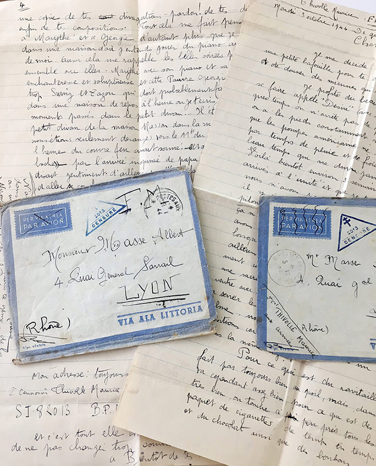 Ensemble de 2 lettres dun soldat (canonnier) des Forces Françaises Libres,Ensemble de 2 lettres d'un soldat (canonnier) des Forces Françaises Libres, Maurice Thivolle, adressées à Albert Masse à Lyon. (enveloppes jointes avec les cachets de censure militaires. 6 pages in-folio (34,5 x 21,3 cm)...
