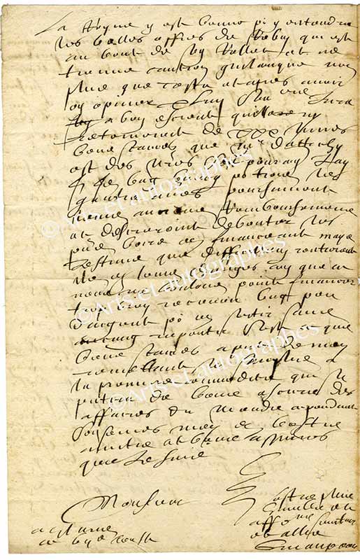 Lettre autographe signéeLettre autographe signée, adressée à M. de Villemontre. 7 août [1610] ; 2 pages in-folio, avec adresse. Un de ses amis allant dans ses quartiers, il profite de l’occasion pour faire porter cette lettre et lui donner des nouvelles de...