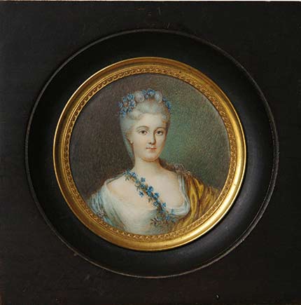 Portrait de Mme de Sémiane.Miniature. Fin XIXe siècle ; 6 cm de diamètre. Selon une étiquette au dos : « Provenant de la vente du 20 mars 1894. Portrait de Mme de Sémiane. »Petite-fille de Mme de Sévigné et fille de Mme de Grignan, Pauline de Grignan...