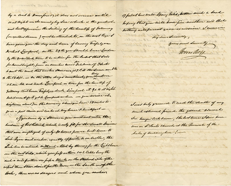 Lettre autographe signéeLettre autographe signée, adressée « My dear William ». Northwest Castle Stranvaer, 25 août 1853 ; 3 1/2 pages in-12, en anglais, traces de colle en marge d’une page.Longue et peu commune lettre de l’explorateur des régions...