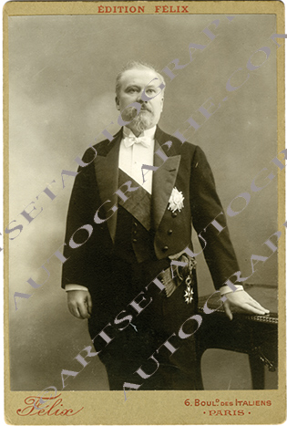 Photographie représentantPhotographie en noir et blanc le représentant en pied avec la Légion d’honneur. Cliché Félix , boulevard des Italiens à Paris. 160 x 105 mm. Très beau cliché.