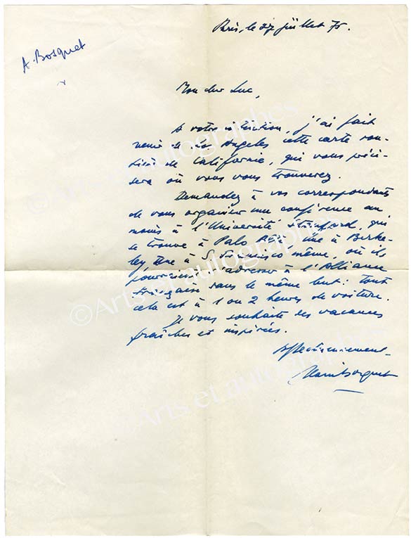 Lettre autographe signéeLettre autographe signée, adressée à Henri de Lescoët. Paris, 1er octobre 1951 ; 1 page in-4°.« Votre lettre si amicale, du 22 septembre, me touche vivement, et je vous remercie des sentiments que vous m’y exprimez. Vous avez eu...