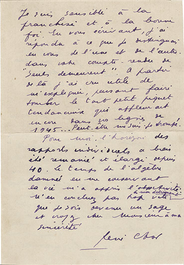 Lettre autographe signéeLettre autographe signée, adressée à A. Rolland de Renéville. [L'Isle sur la Sorgue], 1er août 1945 ; 1 page in-4°, enveloppe autographe timbrée jointe....