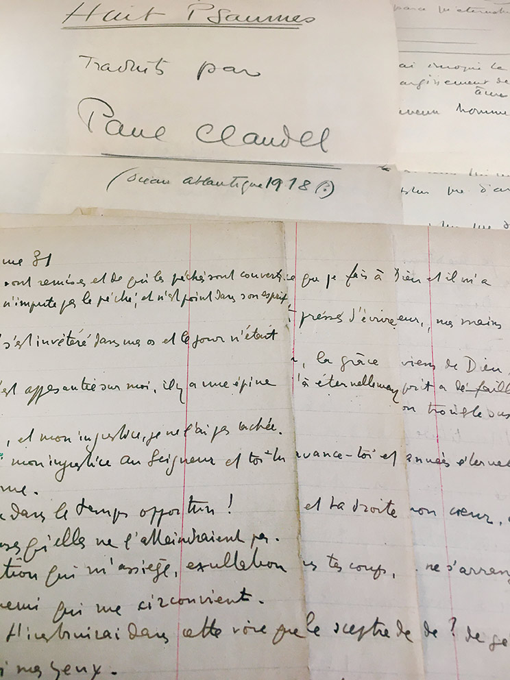 Manuscrit autographe renfermant 8 psaumes.Entre 1918 et 1953, Claudel composa un vaste ensemble de « Psaumes » traduits du latin de la Vulgate, dont seuls un petit nombre furent publiés de son vivant en trois minces recueils....