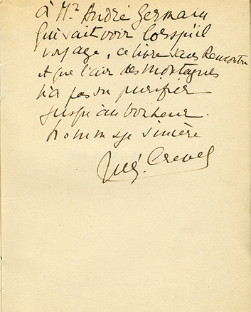 MON CORPS ET MOI« MON CORPS ET MOI ». Éditions du Sagittaire, Paris, 1926 (imprimé 30 décembre 1925) ; 17,5 X 12,8 cm, broché. Édition en service de presse. Envoi autographe signé : « À M. André Germain qui sait voir lorsquil voyage, ce...