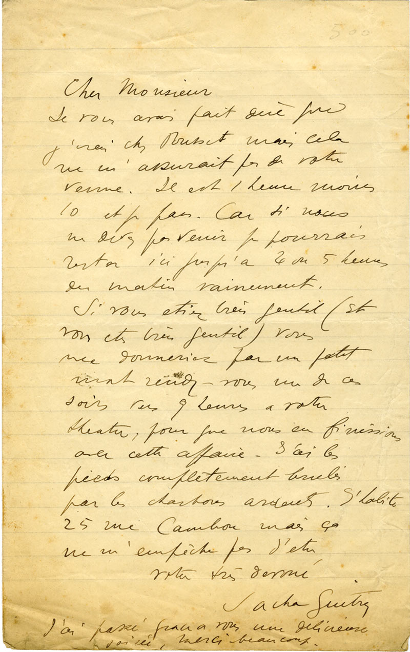 Lettre signéeLettre signée, adressée à Léon Volterra. Paris, 2 février 1935 ; 1 page 1/2 in-4°.« Il est convenu entre nous que je vous donne une comédie nouvelle en quatre actes dont je suis l’auteur et qui sera créée eu Théâtre de Paris,...