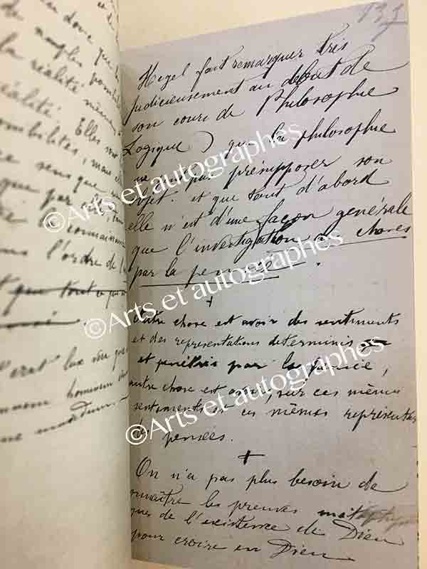 Manuscrit autographe signéManuscrit autographe signé. Cabourg, juillet 1888 ; 95 x 148 mm, plusieurs centaines de pages. « Notes Philosophiques ». Important manuscrit daté de Cabourg, juillet 1888, comportant de nombreuses notes de lectures, des pensées, des...