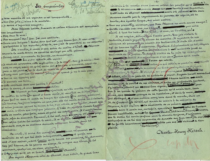 Manuscrit autographe signéManuscrit autographe signé « Les Empreintes ». 4 pages in-8°. Petite saynète.