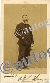 Photographie dédicacéePhotographie dédicacée « Amitié Alp. Karr ». XIXe siècle ; 60 X 100 mm. Photographie de L. Crette, photographe du roi. Pli d’angle et traces de trous d’épingles. Peu commun.
