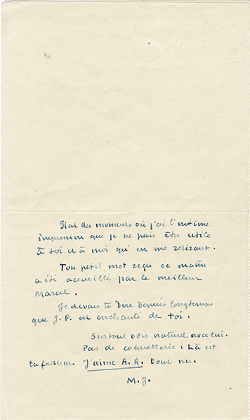 Lettre autographe signéeLettre autographe signée, adressée à Robert Coquet. 1 page in-8 (21 x 12,5 cm), à l’encre bleue sur un double feuillet, pliure. Belle lettre de Jouhandeau à l’inspirateur de son livre Du Pur Amour : Marcel Jouhandeau et Robert...