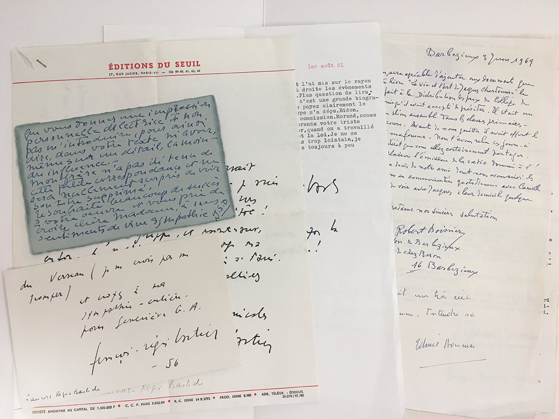 Ensemble de 28 lettres, adressées à Jean-Jacques Brousson, la plupart autographe signées.Ensemble de 30 lettres ou cartes, adressées à Jean-Jacques Brousson, la plupart autographes signées.A. Billy, Pierre Borel (2), G. Charensol, Baronne de Charmisay (2), R. Dévigne (2), L. Descaves, R.L. Doyon (2), R. Escholier, P....
