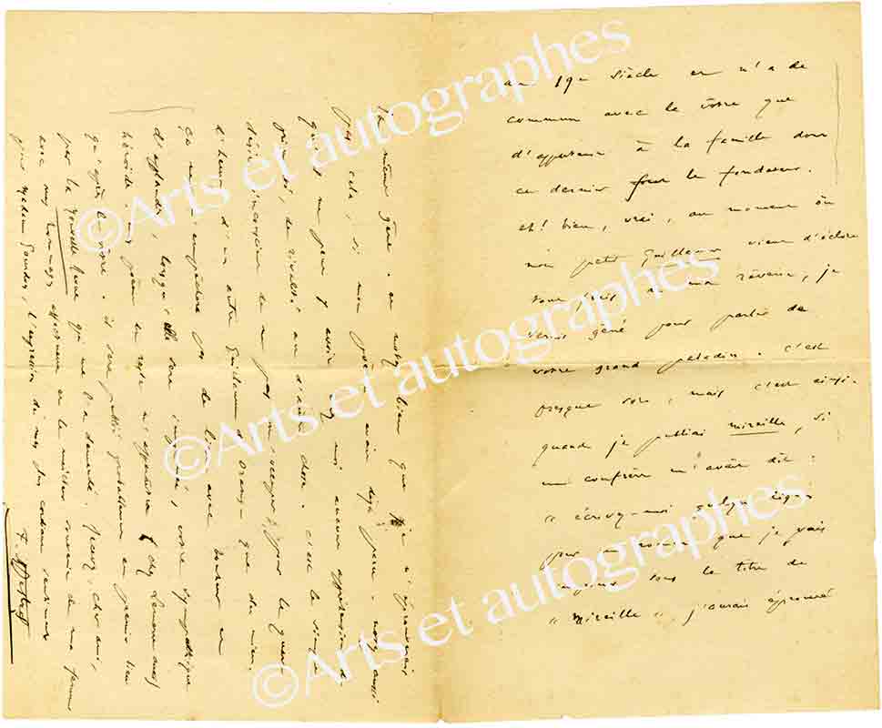 Lettre autographe signéeLettre autographe signée adressée à Monsieur Bienvenu Roux (sous bibliothécaire au musée à Avignon). Maillane, 28 décembre 1875 ; 2 pages et demie avec enveloppe timbrée. Lettre amicale et littéraire écrite en provencal .