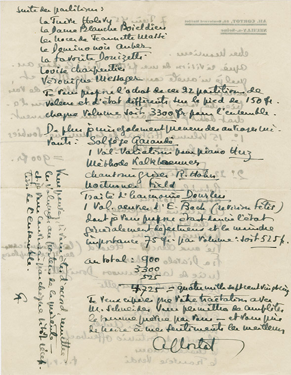 Lettre autographe signéeLettre autographe signée. Sans date ; 1 page 1/4 in-8°. «Voici le seul texte (catalan !) que je possède l’Ouv-Scherzo et Finale [l’Ouverture, Scherzo et Finale pour orchestre op. 52,] de Schumann. Je suppose qu'il ne vous sera pas...