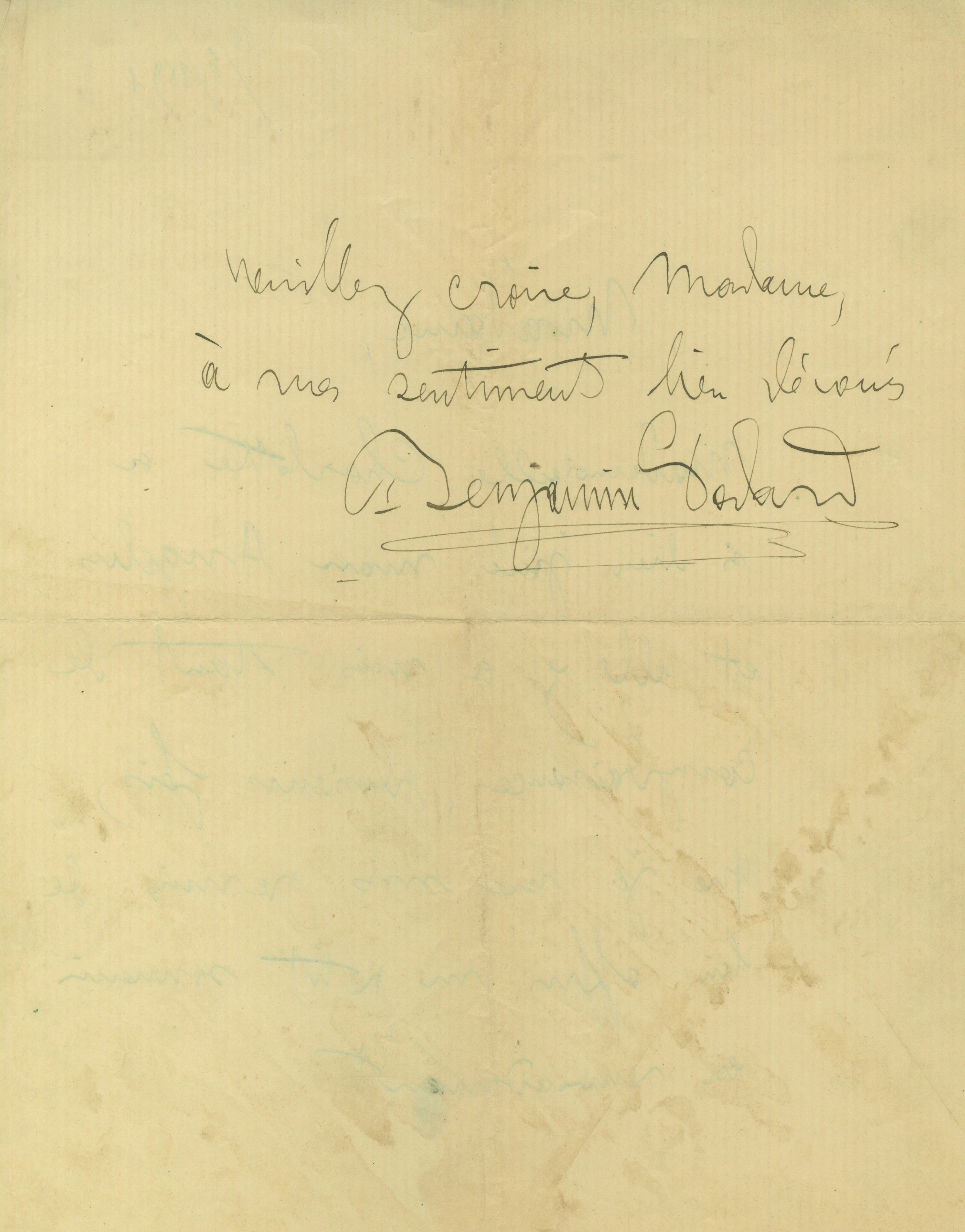Lettre autographe signéeLettre autographe signée à une élève . 30 juillet 1891 ; 1 page 1/2 in-8° sur papier jaunie. ...