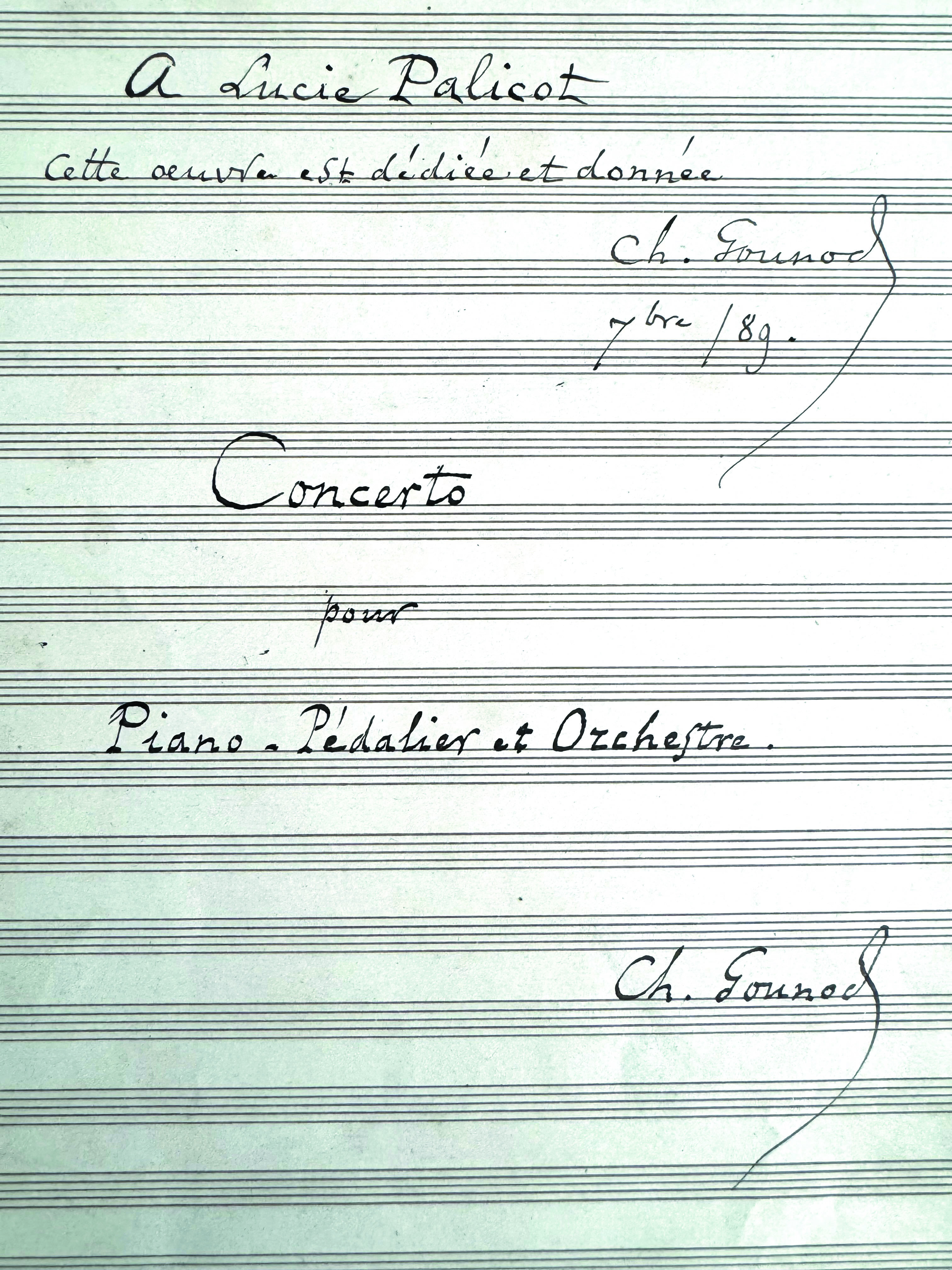 Manuscrit autographe signéManuscrit musicale autographe signée intitulé « Concerto pour piano - pédalier et orchestre » avec envoi autographe « A Lucie Palicot cette oeuvre est dédiée et donnée septembre 1889 ». 133 pages in folio plus page de titre. ...