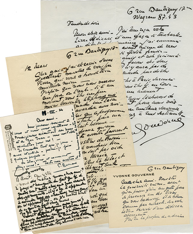 Ensemble de 3 correspondances [à Benoist Méchin ?] et une carte de visite autographes signées.Ensemble de 3 correspondances [à Benoist Méchin ?] et une carte de visite autographes signées. 1924 ; 1 page in-12 et 2 pages in-8°....