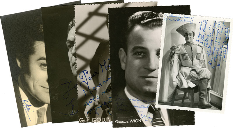Photographies signées ou dédicacéesPhotographies signées ou dédicacées. Format carte postale. — BROTHIES Michel : photographie signée. Cliché Carabin (Strasbourg). — GODIN Guy : photographie signée. Cliché Studio Hollywood.— GREINDL Josef : photographie...