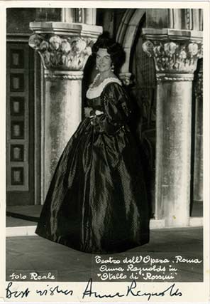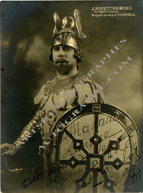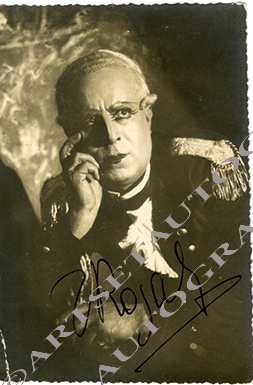 Photographie dédicacéePhotographie dédicacée. 15 x 10,5 cm. Photographie la représentant à l’opéra de Rome dans Otello de Rossini.