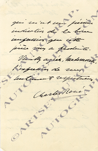 Lettre autgraphe signéeLettre autographe signée adressée à Mr Salvayre. Non datée, 1 page in-12 avec enveloppe. ...