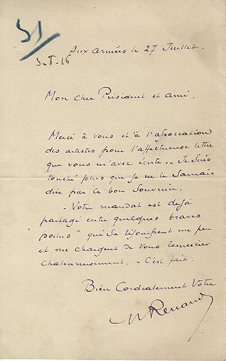 Lettre autographe signéeLettre autographe signée. « Aux Armées le 27 juillet » ; 1 page in-8°. ...