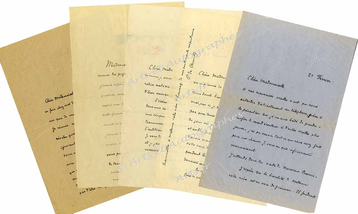 Ensemble de lettres autographes signéesEnsemble de 6 lettres autographes signées. « Je suis heureux que vous ayez pu entendre l’exécution d’Éros Vainqueur samedi soir. Cette exécution fut en effet excellente et m’a absolument satisfait. Comme je l’ai dit à...