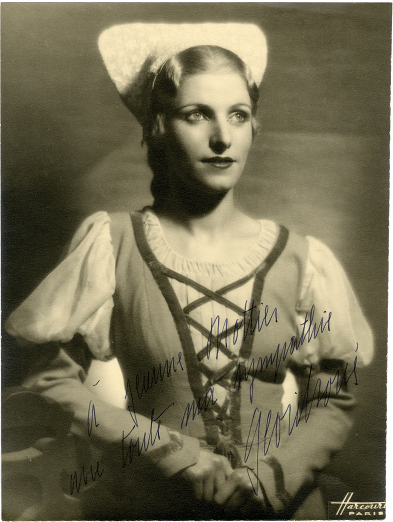Photographie dédicacéePhotographie dédicacée. 23,5 x 17,5 cm. Photographie du studio Harcourt.« À Jeanne Mottier avec toute ma sympathie. Geori Boué. »