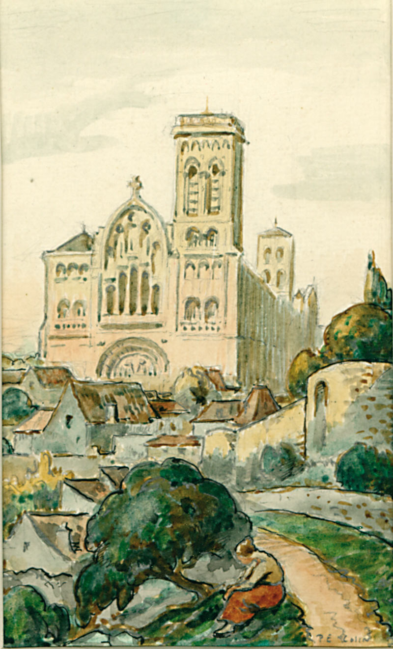 Aquarelle« La Basilique ». Aquarelle sur papier signée « P.E. Colin ». 16,5 x 10,5 cm. Pièce encadrée.
