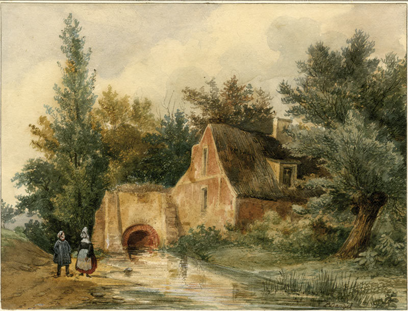 AquarelleUne ferme aux environs de Bayeux.AquarelleSignée en bas à droite.XIXe siècle ; 13,2 x 17,5 cm.