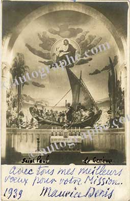 Carte autographe signéeCarte autographe signée, adressée au Révérend D. Manning au Liberia. 24 janvier 1939 ; 14 x 9 cm. Au recto de la carte (signée en dessous), figure la grande peinture de l’abside de Saint Paul à Coligny, canton de Genève ( par...