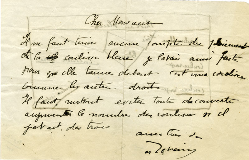 Lettre autographe signéeLettre autographe signée. Sans date ; 2 pages in-8.Sans doute pour un décor d’une pièce de théâtre. « Il ne faut tenir aucun compte du paiement de la coulisse bleue, je l’avais aussi faite pour qui’elle tienne debout. C’est...