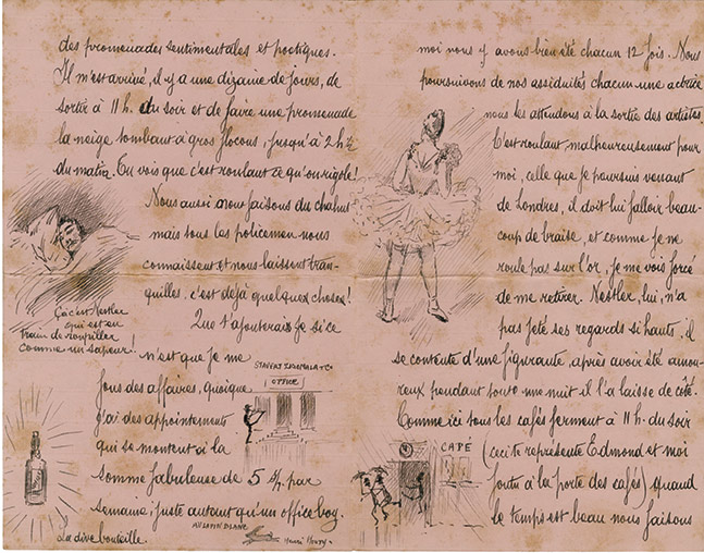 Lettre autographe signéeLettre autographe signée, richement illustrée de 9 dessins à l'encre. Bradford, 31 janvier 1891; 4 pages in-8°, légères rousseurs....