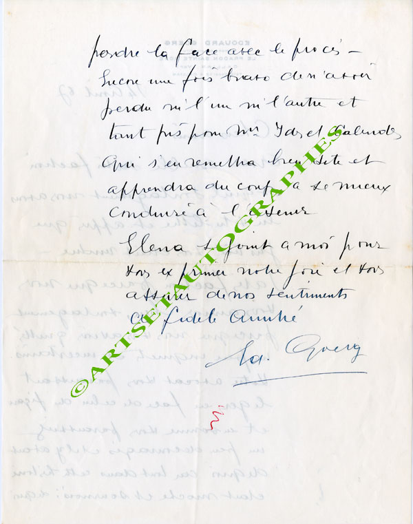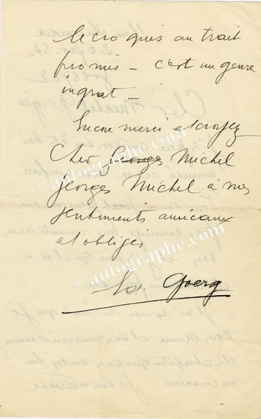 Lettre autographe signéeLettre autographe signée, adressée au critique d’art Michel Georges-Michel . 20 février 1954 ; 2 pages in-8°. « Je ne me suis pas ennuyé une minute avec vous. […] Je m’excuse du mal que je vous donne et vous remercie d’avance...