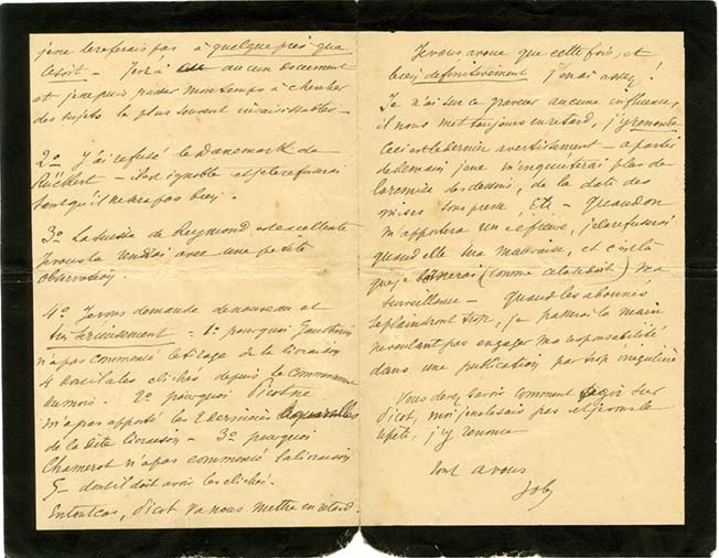 Deux lettres autographes signées, adressées à M. MartinDeux lettres autographes signées, adressées à M. Martin. 2/6 décembre 1901 ; 8 pages in-8°. Longues lettres de colère, adressées à son éditeur. « Je comprends maintenant pourquoi, si mal organisée, la publication devait sombrer...