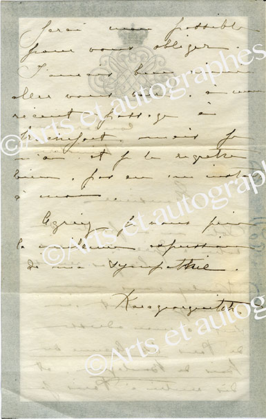 Lettre autographe signéeLettre autographe signée, adressée au poète et journaliste Georges Gourdon. Concarneau ; 2 pages in-8° sur papier de deuil à ses armes et son monogramme.« Loti m’a parlé de votre “épée” mais ne me l’a pas remise....