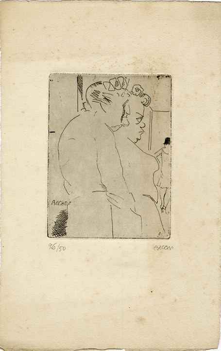 Eau-forte représentant deux femmes.Eau-forte représentant deux femmes. Numérotée 26/50. Signée à droite. 25,4 x 16 cm, légères rousseurs.