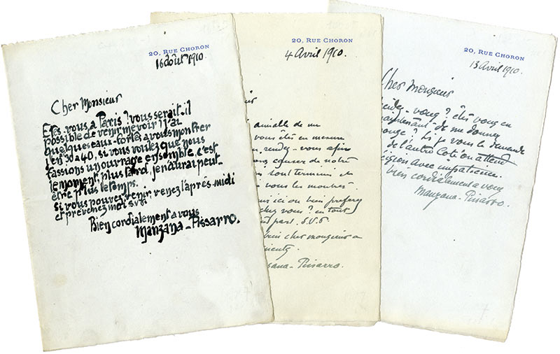Ensemble de lettres autographes signéesEnsemble de 3 lettres autographes signées :— 4 avril 1910 ; 1 page in-8°. « Vous seriez bien aimable de me faire savoir si vous êtes en mesure de me donner un rendez-vous afin que nous puissions causer de notre affaire, les essais...