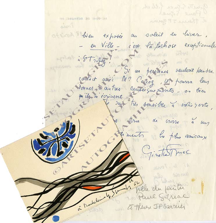 7 lettres ou pièces la plupart autographes signées, adressées à Madeleine Marceron.7 lettres ou pièces la plupart autographes signées, adressées à Madeleine Marceron.— Thérèse Manessier : 1965 : « Alfred va travailler ici cet hiver, il y a tant de paix et de belle lumière tout autour de nous. Nous serions très...