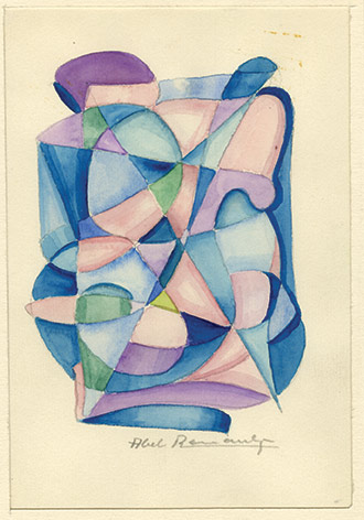 Dessin à la mine de plomb rehaussé à laquarelle.Dessin à la mine de plomb rehaussé à l'aquarelle. Signé en bas. Figure abstraite. 16 x 11 cm.