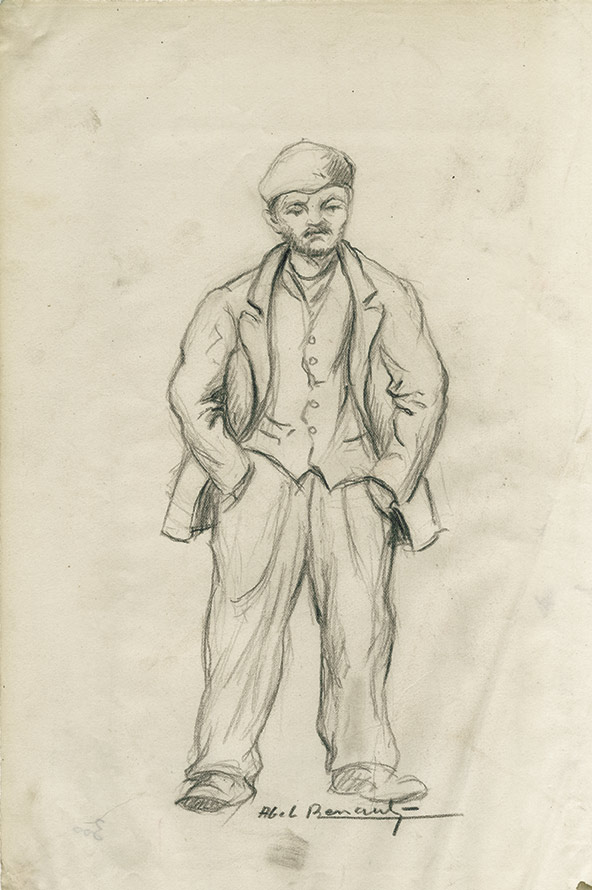 Dessin à la mine de plomb.Dessin à la mine de plomb. Signé en bas. Homme. 32,5 x 24 cm.