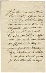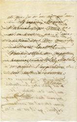 BALMAIN Alexander Antonovitch Ramsay, comte deLettre autographe signée, adressée à l'amiral Pulteney Malcolm, commandant de la base navale de Sainte-Hélène. Sainte-Hélène, lundi [25 novembre 1816] ; 2 pages in-8°, adresse et contreseing. Il s'excuse de ne pouvoir venir lui rendre visite. « Si je n'ai pas été des premiers, Monsieur...