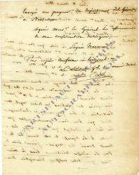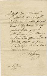 BALMAIN Alexandre Antonovitch Ramsay, comte deLettre autographe signée, adressée à l'amiral Pulteney Malcolm, commandant de la base navale de Sainte Hélène. 6 mars 1817 ; 1 page in-8°, en français. « Oserai-je, Monsieur l'Amiral, vous supplier de joindre à votre paquet pour l'Angleterre cette petite lettre pour le Cte Lieven. Je...