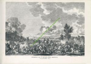 BATAILLES DU CONSULAT ET DE L’EMPIRE.BATAILLE DE ST GEORGE, PRÈS MANTOUE, LE 29 fructidor An IV [15 septembre 1796]. Grande gravure représentant une scène de la bataille de St George près de Mantoue. Tirage du Second-Empire ; 380 X 258 mm sur un feuillet de 490 X 335 mm, fente en marge. Gravée par Dupréel d’après Carle...