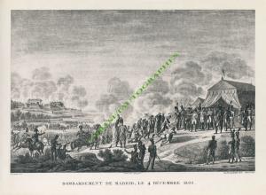 BATAILLES DU CONSULAT ET DE L’EMPIRE.BOMBARDEMENT DE MADRID, LE 4 DÉCEMBRE 1808. Grande gravure représentant Napoléon devant Madrid. Tirage du Second-Empire ; 376 X 250 mm sur un feuillet de 490 X 335 mm. Gravée par Bovinet d’après Le Compte. Tirée de l’Album des Campagnes des Français sous le Consulat et l’Empire...