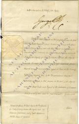 GEORGE IVPièce signée. Palais de Carlton House 27 décembre 1815 ; cahier in-folio de 10 pages, sceau aux armes sous papier ; en anglais, translation anglaise jointe. Copie ratifiée et signée comme prince régent pour le roi George III, et contresignée par lord Castlereagh, du traité établi entre la...